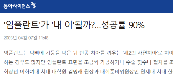 언론보도 '임플란트'가 '내 이'될까?…성공률 90%