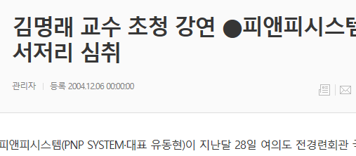 언론보도 김명래 교수 초청 강연 ●피앤피시스템 라이브서저리 심취
